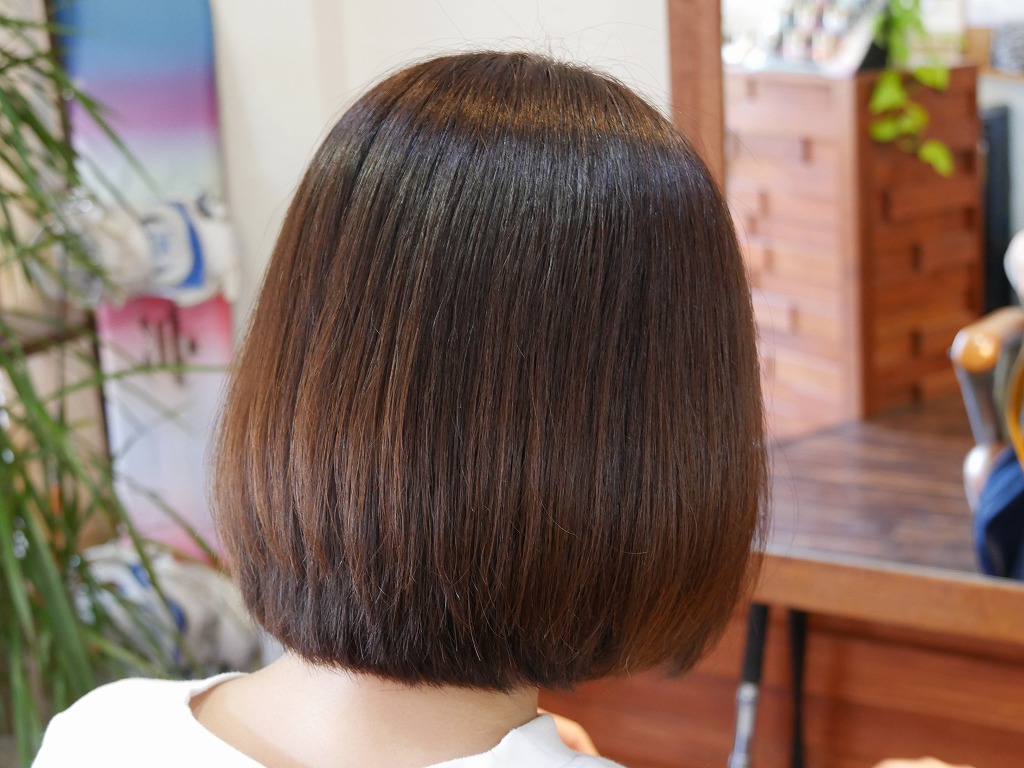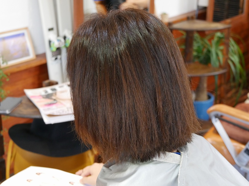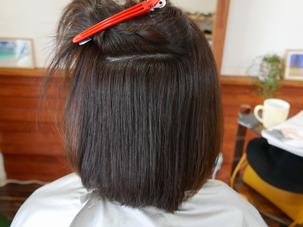 折れも直ってますが、毛先はまだチリチリがやや残っています