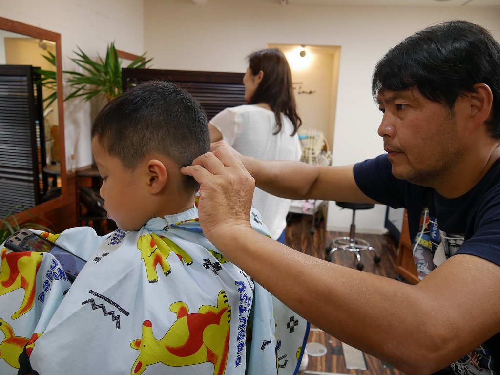 男の子のカットは髪を短くするので あまり動かれるとできないです